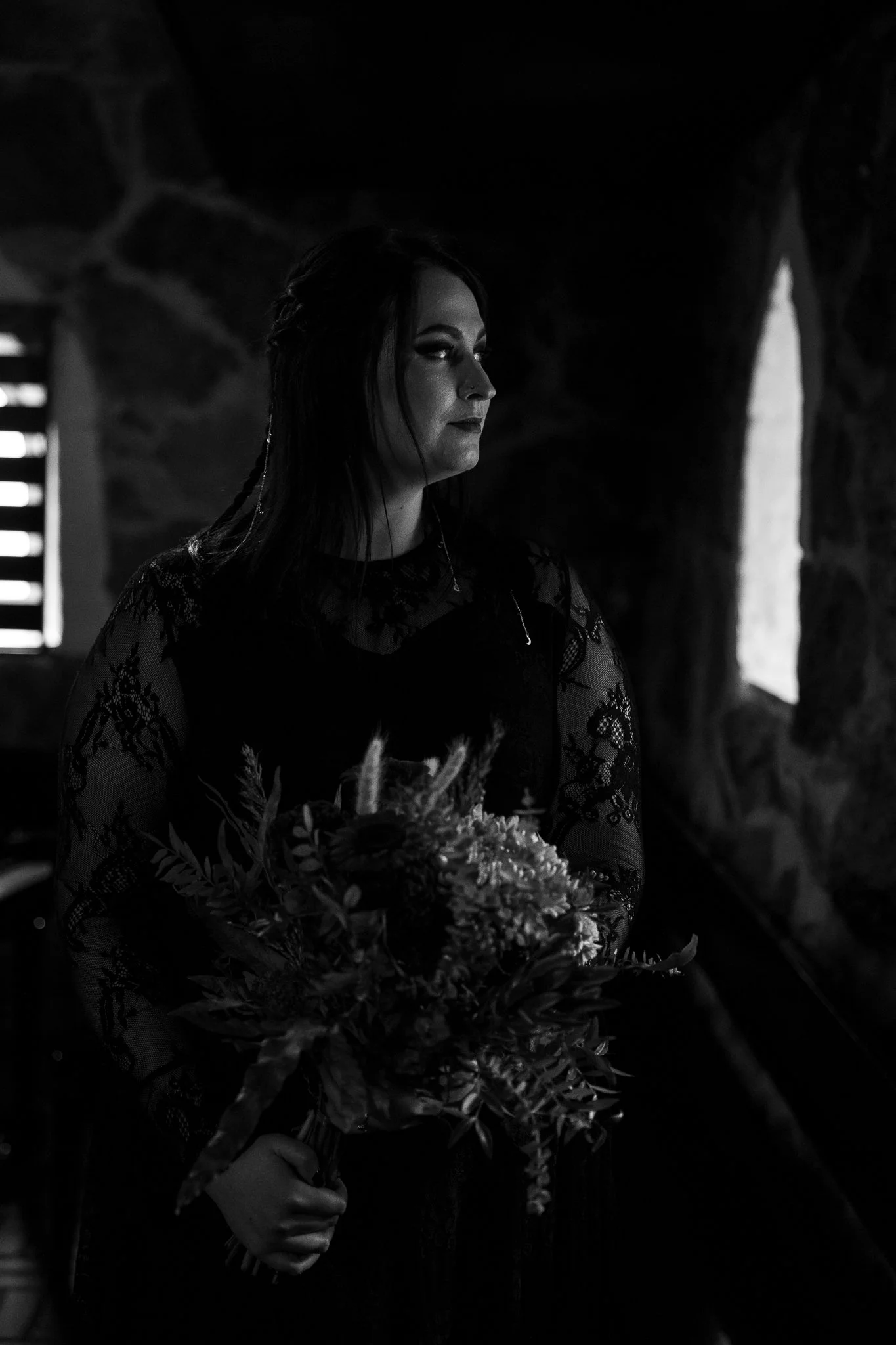 Täydellisesti yhteen sopivien visuaalisten mieltymystemme lisäksi oli ihan parasta, että pystyimme käyttämään kuvauksiin aikaa! Kun potretit kuvataan hääpäivän aikana, aika on usein hyvin rajallinen – oli niin hauskaa kerrankin voida kokeilla kaikki, mitä mieleen tuli! Olen, ja olemme kaikki tyytyväisiä lopputulokseen. Tulevaisuutta ajatellen manifestoin lisää mustia hääpukuja kamerani eteen!