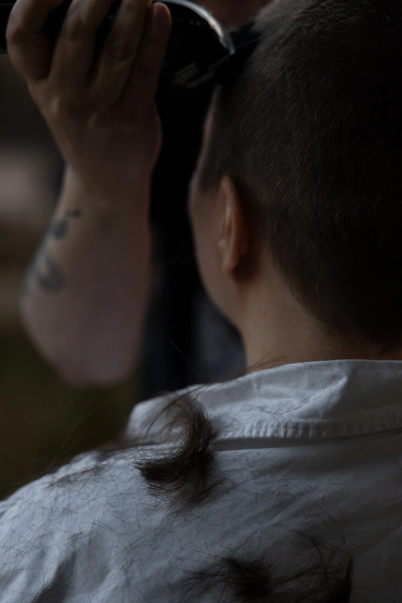 My friend got diagnosed with cancer and after starting chemotherapy he wanted to shave his hair off on his own terms before it fell out. I suggested that we do it together, document the process, and take photos right after the haircut that would help him get used to his new look.