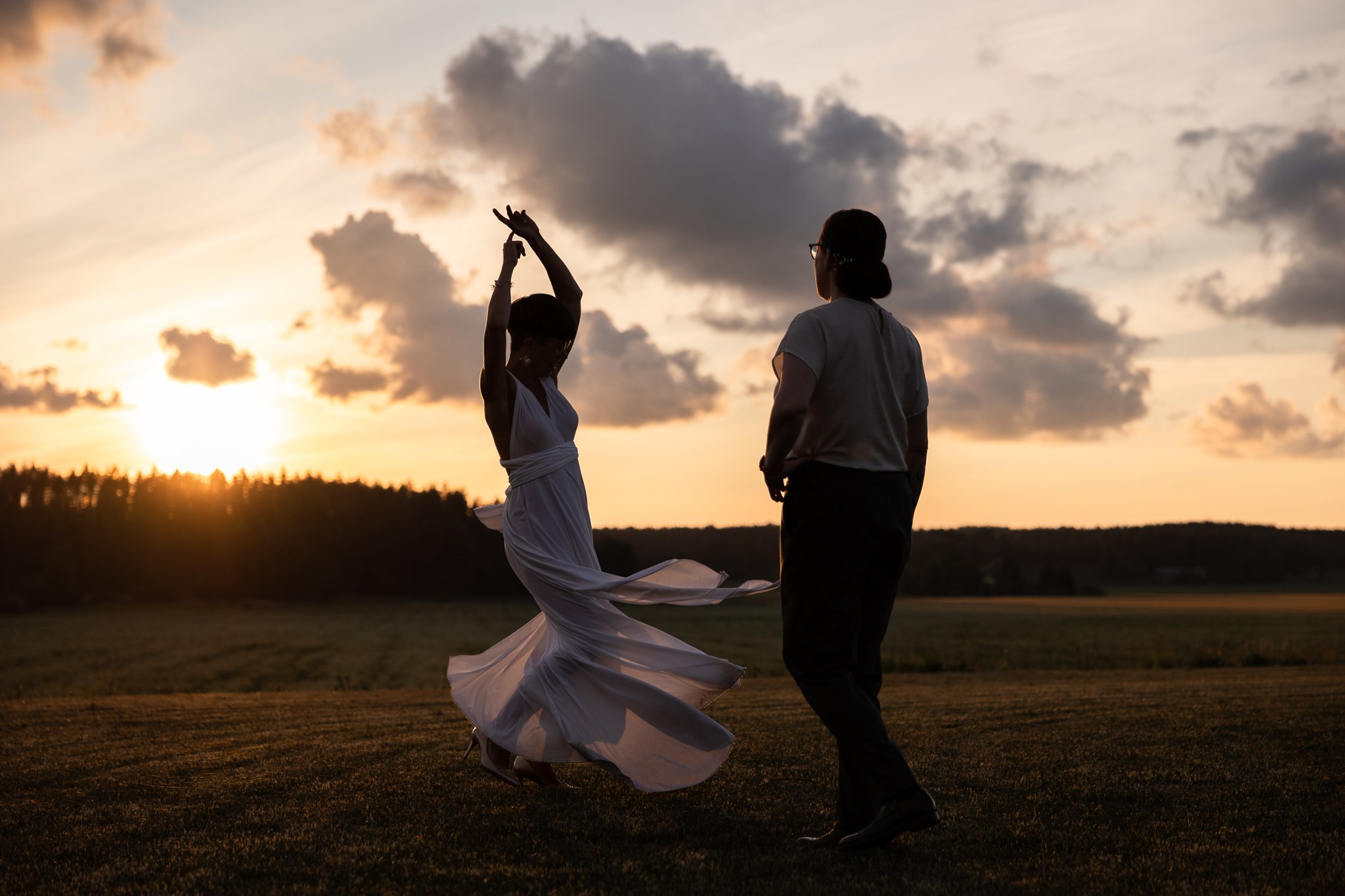 If you wish to have some beautiful sunset wedding portraits, you should reserve a separate time slot for that photoshoot. It is important to plan this with your photographer so they can follow the changes in light and remind you about this photoshoot. A very handy tool that helps you plan this is Google the exact time for sunset in your location (sunset + place/town/city + date) and then schedule a photoshoot approximately on that given time. Remember to check the surroundings too – buildings and trees cast shadows. For example if the reception is held in a place where the last rays of sun touch at 9 p.m., you should schedule a sunset photoshoot between 8:30 p.m. and 9 p.m. or from 8:45 p.m. to 9:15 p.m. Make sure that all those people who are in charge of program know that this time is sacred – no speeches or other program should be scheduled to that time slot. This short peaceful portrait shoot moment is also a perfect pause for the wedding couple to catch up and concentrate on each other without interference from guests.